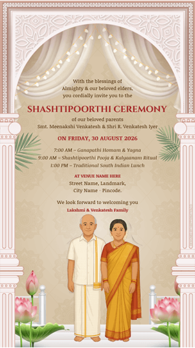 Shashtipoorthi Invitation Card admin2025-05-22T11:16:09+05:30May 22nd, 2025| Share This Story, Choose Your Platform! FacebookXRedditLinkedInTumblrPinterestVkEmail