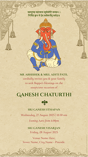 Ganesh Festival Invitation Card admin2025-07-22T17:05:20+05:30July 22nd, 2025| Share This Story, Choose Your Platform! FacebookXRedditLinkedInTumblrPinterestVkEmail