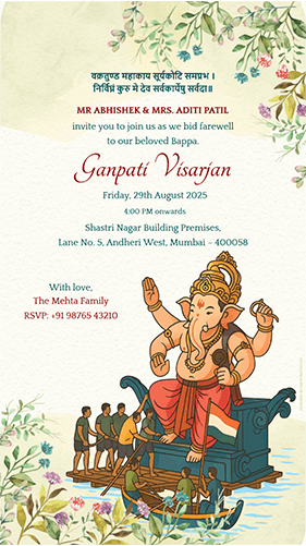 Ganesh Visarjan Invitation Online admin2025-07-28T14:48:23+05:30July 28th, 2025| Share This Story, Choose Your Platform! FacebookXRedditLinkedInTumblrPinterestVkEmail