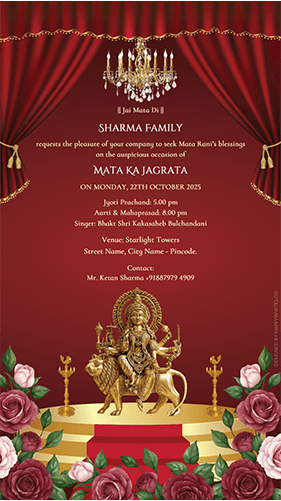 Mata Rani Jagran Invitation Card admin2025-09-09T17:19:21+05:30September 9th, 2025| Share This Story, Choose Your Platform! FacebookXRedditLinkedInTumblrPinterestVkEmail