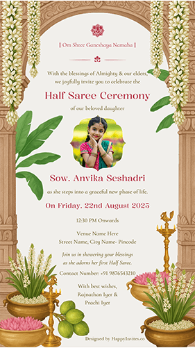 Half Saree Invitation Card admin2025-10-18T14:42:41+05:30October 18th, 2025| Share This Story, Choose Your Platform! FacebookXRedditLinkedInTumblrPinterestVkEmail