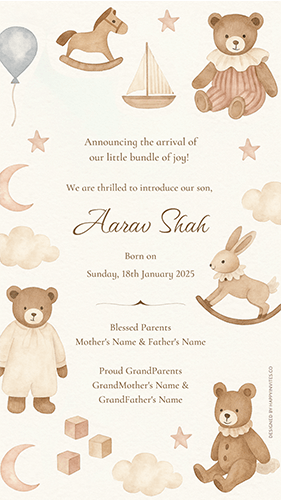 Bear Theme Baby Birth Announcement Card