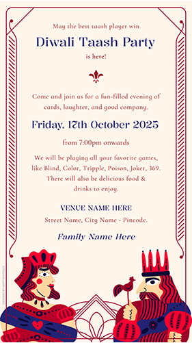 - Make your Diwali party unforgettable with an invite that’s as lively as the game itself – because every great Diwali cards night starts with the perfect invitation!